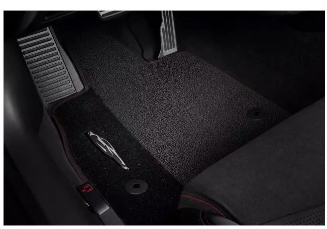 These are black with red stitching and a raised metallic Stingray silhouette. These are much more plush than the factory matt. GM (part number 85103785). They are new and never used. Still in the original packaging. They sell them for $310 normally.
